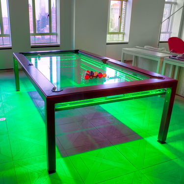 Working within a penthouse overlooking Central Park West, Pooltableportfolio collaborated with Reitveld Architects to create a gaming centerpiece that embraced the home's ethos of transparency. The client required a design that would blend seamlessly with the sleek, modern aesthetic of the space while preserving the open sightlines of the apartment.