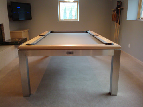 Working closely with the homeowner, who provided input on material choices and design elements, we aimed to create a pool table that harmonized with the modern and minimalistic decor of the residence. The concept centered around simplicity and elegance. We used light maple for the table’s rails and stainless steel legs to reflect the home's contemporary furnishings.